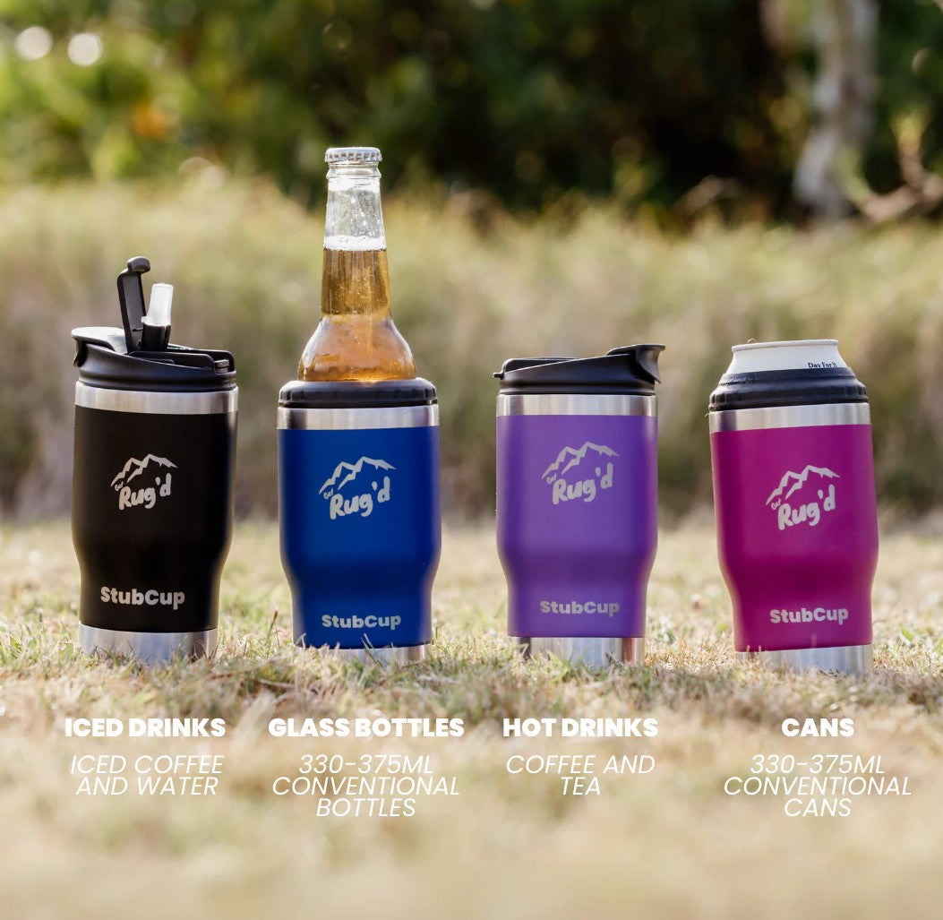 The StubCup® is the ultimate stubby cooler and coffee cup in one! Featuring two lids - one for coffee and one for cans and bottles. With its double-wall insulation, it keeps your coffee hot and drinks ice-cold. Plus, the built-in bottle opener makes it perfect for any occasion.