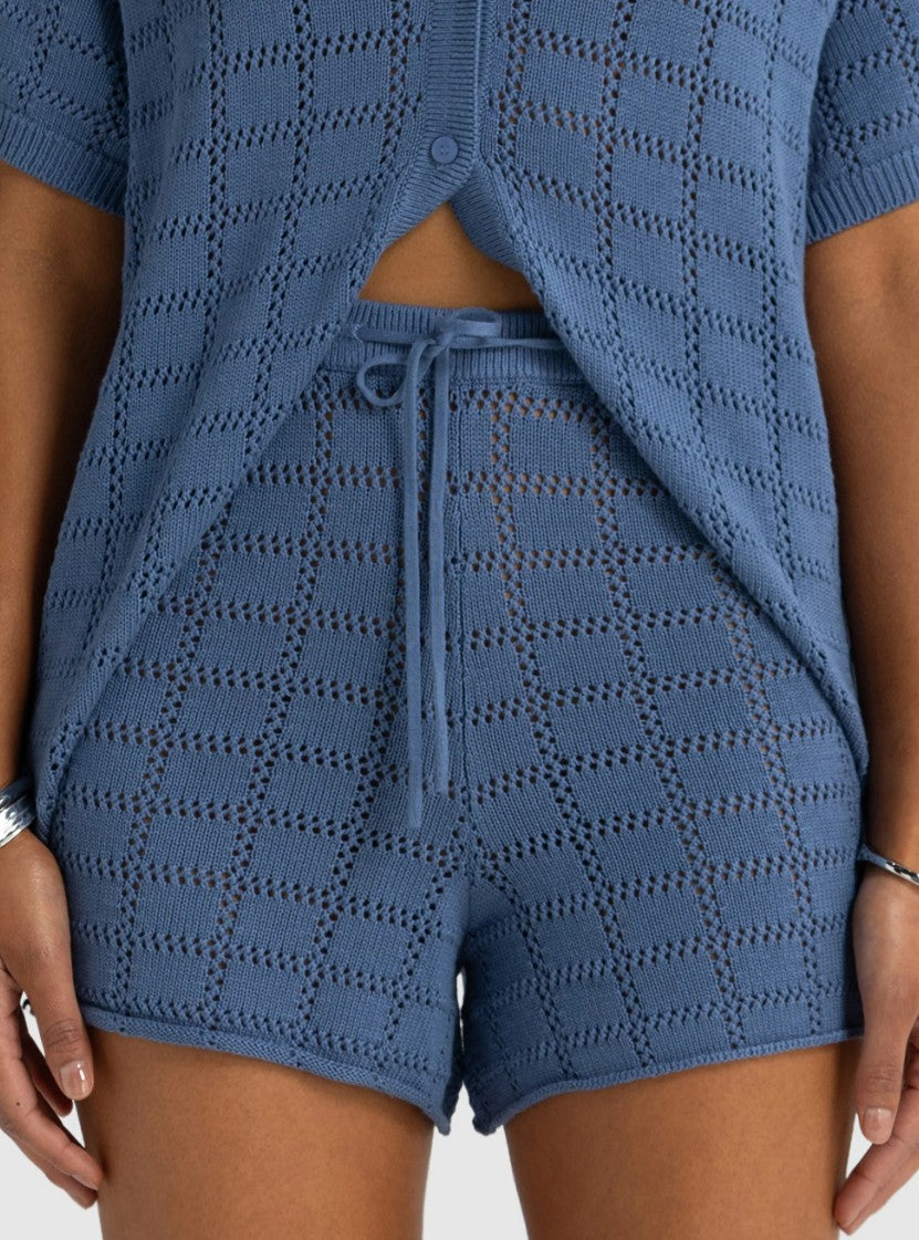 Melia Geo Knit Shorts - Harbour Blue