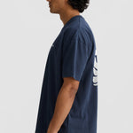 Introducing the Unisex Shelly Box Fit T Shirt Navy. With a box fit silhouette and our newest screen printed graphic on the back, this T Shirt is designed for comfort and style.